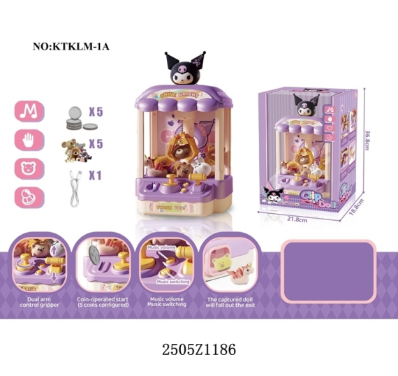 Máy gắp thú nhồi bông Kuromi KTKLM-1A là trò chơi giải trí hấp dẫn dành cho trẻ em, mô phỏng máy gắp thú tại khu vui chơi. Thiết kế nhân vật Kuromi cá tính – dễ thương, màu sắc nổi bật, kết hợp âm nhạc vui nhộn, mang đến trải nghiệm chơi thú vị ngay tại nhà.